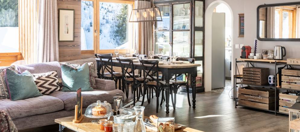 Catered ski Chalet Quatre Meules is situated in a great location, within easy walking distance of the main lift station, ski school meeting points at La Chaudanne plus the shops, restaurants, ice rink and pool are just a short distance away. This makes it an ideal choice for a smaller group of adults, families and beginners, as access in and out is very easy.