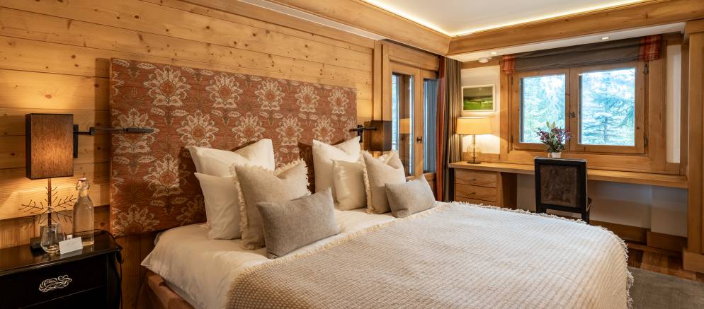 The chalet sleeps up to 10-12 guests in five twin or double bedrooms, all of which have an en-suite bathroom. Four of the bedrooms have balconies or terrace access and in addition there is a small bunkroom which is ideal for children.