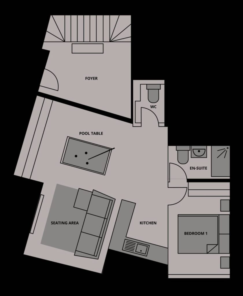 King-size double or twin bed with en-suite shower room.