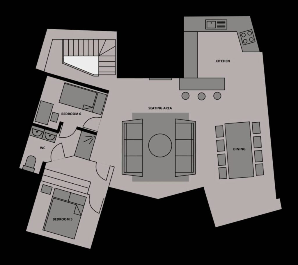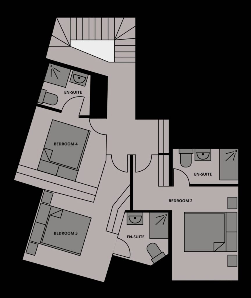 The master suite and bunk room located on the top floor can become a family suite if the co-joining shower room is opened up. The master suite has a beautiful view of the Pleney pistes and a lovely sunny position. The bunk room has a desk in the room allowing it to be used as an office space as well as a bedroom, offering excellent flexibility for guests.