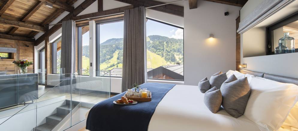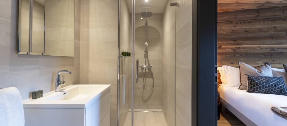 The chalet’s four dedicated en-suite bedrooms are spread between level 1, level 2 and level 4. At the top of the chalet, and with the entire floor to itself, is the master suite. With a walk-in wardrobe, sitting area, wraparound windows and a balcony, this is more than just a place to sleep.