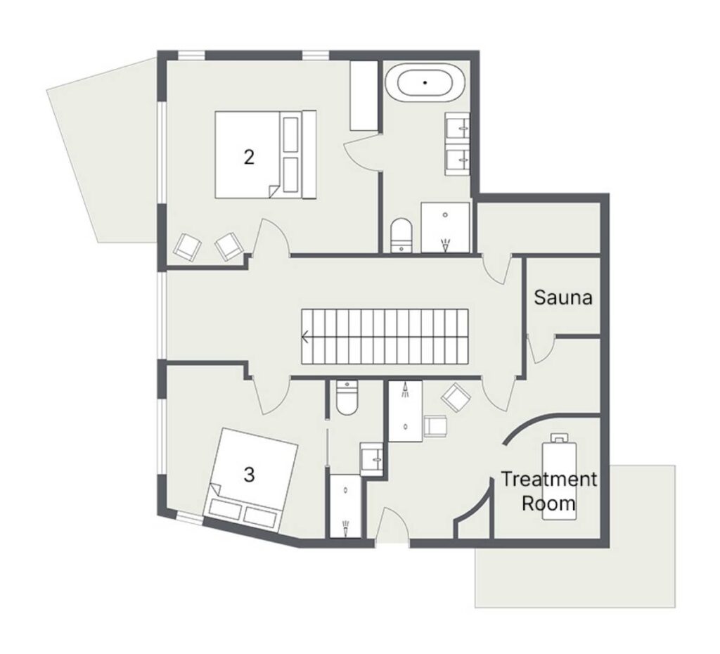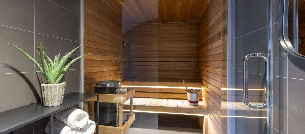 Down on level 2 is the spa and wellness area with an indoor sauna, shower and treatment room where you can enjoy a massage or beauty treatment. Stepping out from the spa to an outdoor deck and a hot tub that takes in the perfect setting and views is ready for you to sink into.