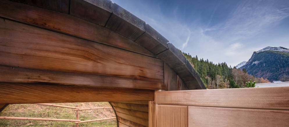 The chalet is arranged over four floors and can accommodate up to 12 guests. Built across half levels all accessed from a beautiful glass, metal and stone central staircase, the interior is clad in larch, giving it a cosy ambiance. Terraces and balconies on each floor allow you to make the most of the views of the forest and mountain views, including up to the Pointe de Nyon.