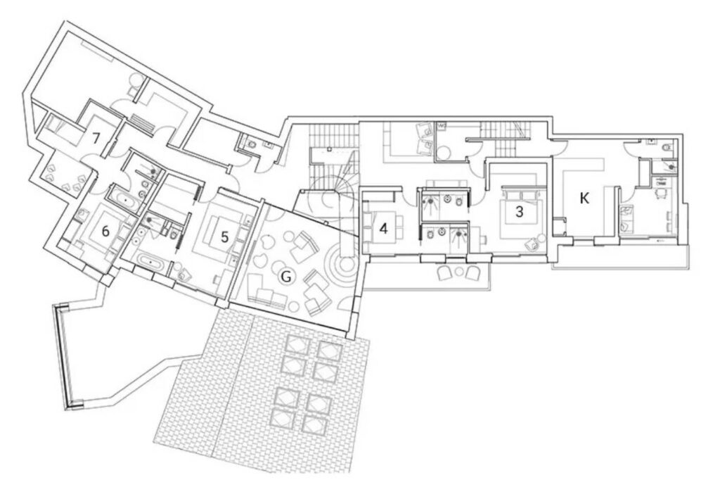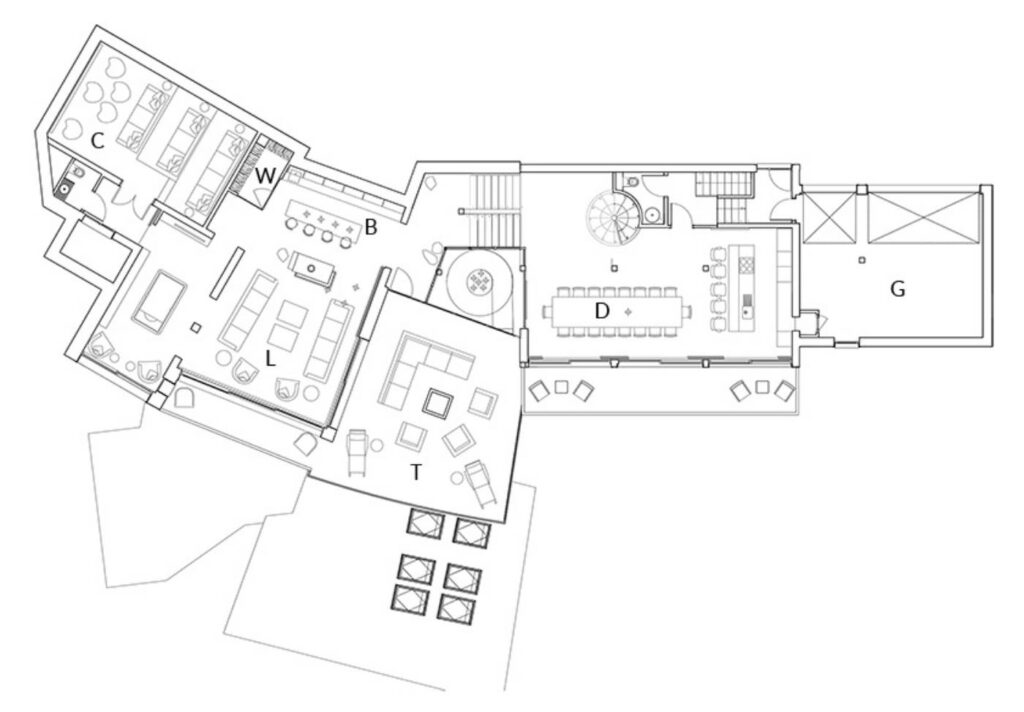 This catered ski chalet is arranged over four floors and approximately 1,000m2 of living space. Sleeping 12-14 guests in great comfort there are seven bedrooms arranged between the ground and second floors. The first floor is dedicated to the expensive living and dining rooms, a cinema room, bar, pool table and large terrace.