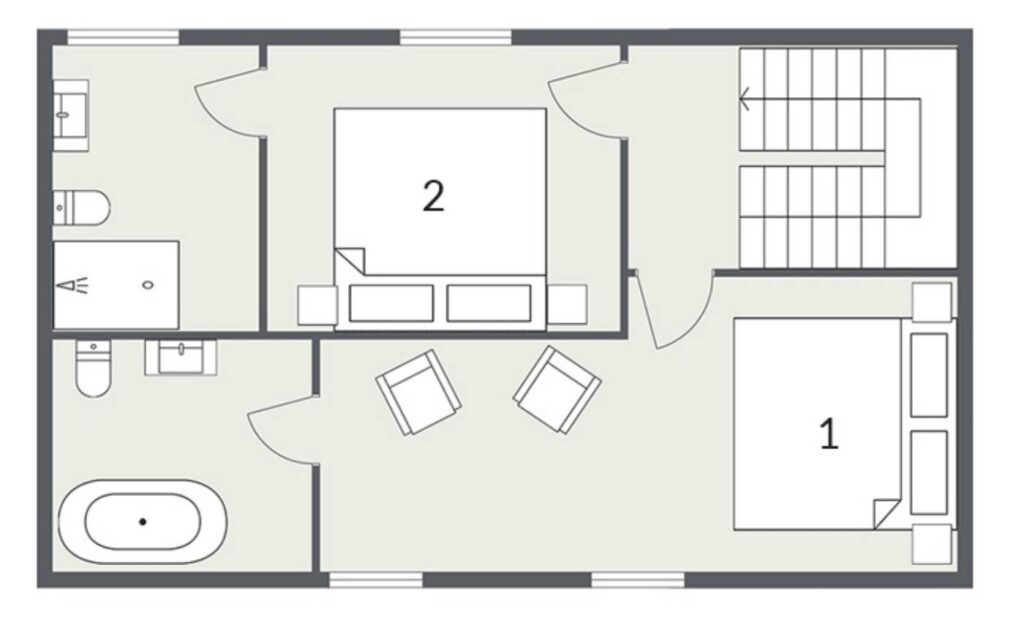 Chalet Little Gem, which is located just adjacent to the main chalet and offers a further two en-suite bedrooms and a generous open plan living space. At 135m2 this isn’t simply an ‘annexe’, it’s a chalet in its own right and together with Chalet Sapphire allows up to 16 guests to enjoy this wonderful Alpine property.