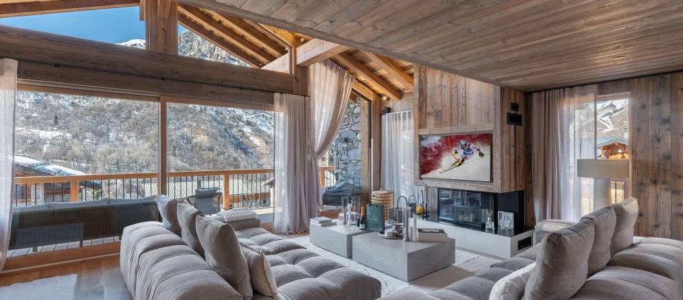 The interior designer is working with a muted and neutral palette of creams, taupes, and light greys with lots of sumptuous fabrics and textures, bespoke furniture, designer pieces and high-end fixtures and fittings. Flooded with natural light from large floor to ceiling windows and complimented with natural aged wood internal cladding, this chalet perfectly blends modern architecture with alpine elegance.