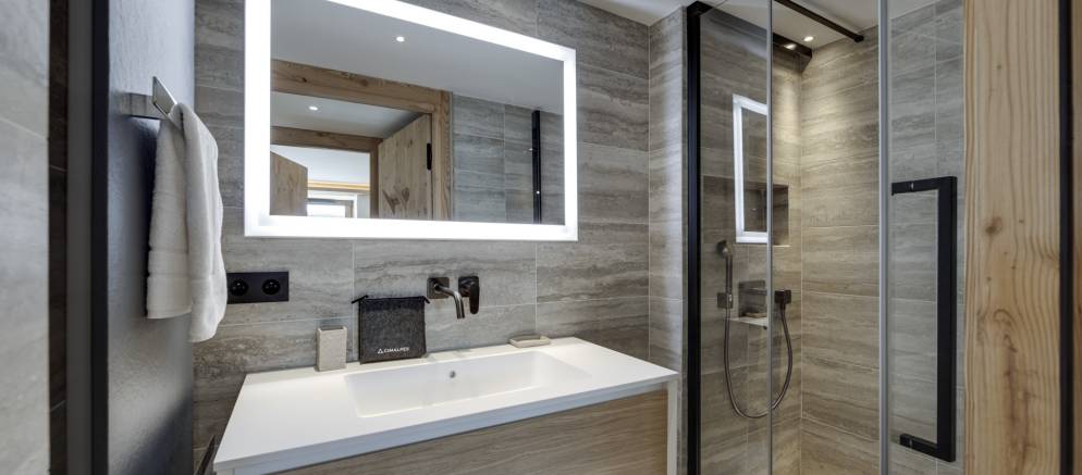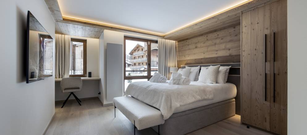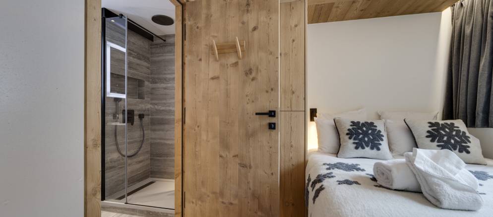 The Ercina Residence in Val d’Isere is in a prime location in a quiet residential area, just 500 metres from the ski slopes and resort centre. Apartment Ecrina 104 is an elegant 120m2 duplex apartment arranged on the first floor of this high-end residence. Guests also have access to the shared wellness facilities in the residence which includes an indoor swimming pool.