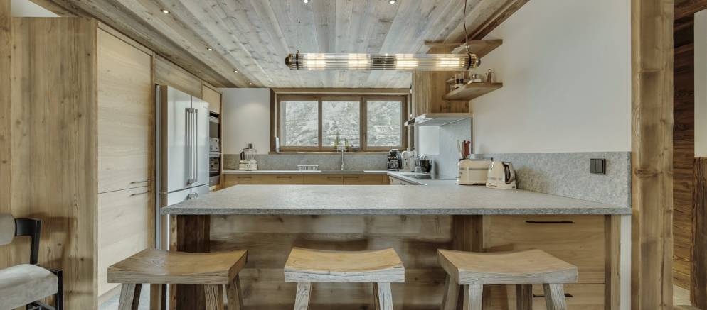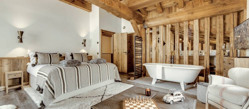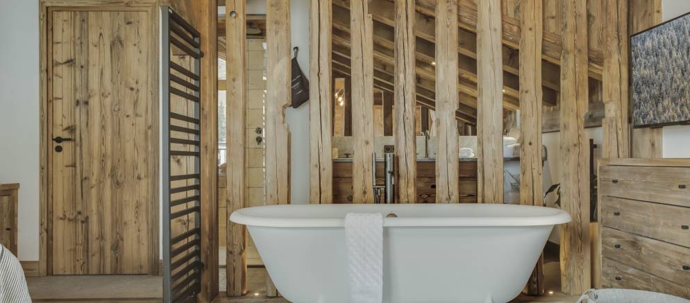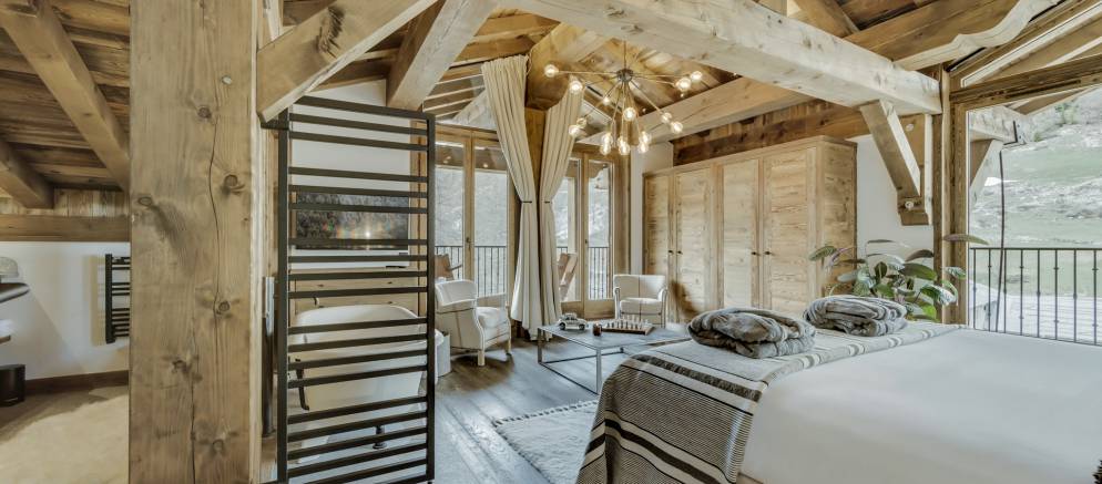 Built in 2019 by the renowned architect, John-Charles Covarel, the Cala residence is in the Le Legettaz neighbourhood of Val d’Isere. Cala Slopeside, spread over 200m2 of floorspace, delivers an airy and calm ambiance with natural wood floors and walls paired perfectly with white ceilings. Grey granite bathrooms with black fixtures and fittings bring elegance to each of the bedrooms.