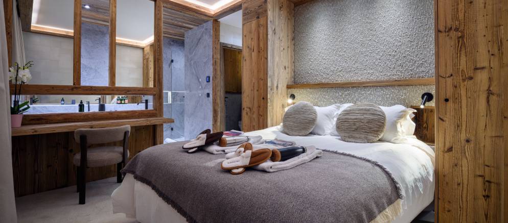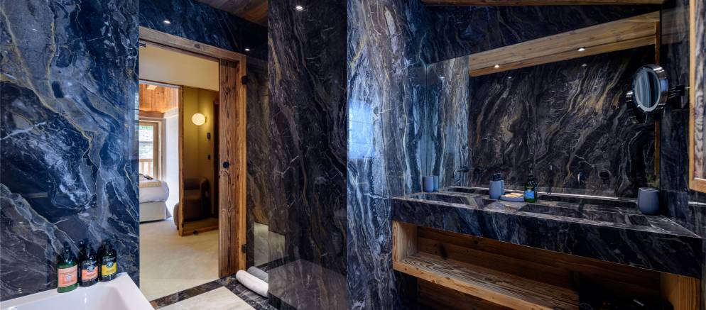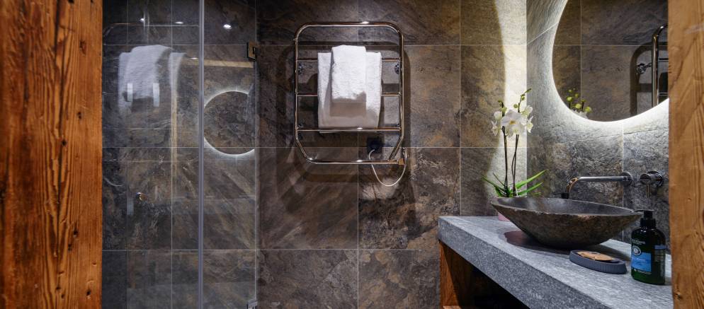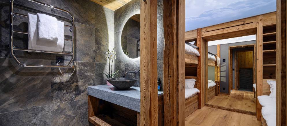 The chalet’s six charming bedrooms are all equipped with its own en-suite bath or shower room. Decorated in calming tones and with soft lighting, they provide a haven to escape to after a long day on the ski slopes. There are five bedrooms, including the master, which can all be set-up with a double or twin beds, along with a children’s bunk room sleeping 3 with a bunk bed and additional single bed.