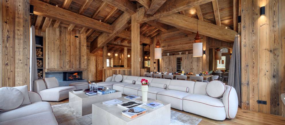 The chalet is spread across three floors and can accommodate 10-13 guests. At the heart of the chalet is the spacious open plan living space that incorporating the lounge and dining areas. This room is flooded with natural light and flanked by balconies to the south and east. The design harmoniously blends traditional alpine architecture with a refreshing modern twist.