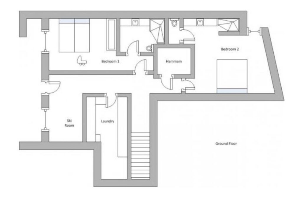 The chalet sleeps 8 people in four en-suite bedrooms that are arranged on the ground and first floors. For relaxation ease tired legs and bodies in the steam room, whilst children will enjoy the TV lounge on the mezzanine floor above the living room.