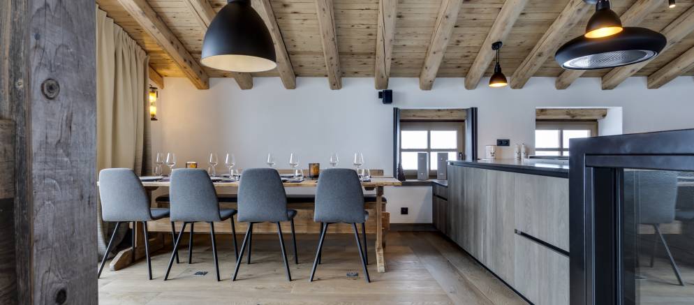 The chalet is arranged across three floors and can accommodate up to 10 guests in five bedrooms. All the bedrooms have en-suite bathrooms and one of the bedrooms is configured as a bunk room, perfect if you have children. Chalet Loup is available on a self-catered basis and is one of the best luxury chalets for groups that would like a quiet location and independence on their ski holiday.