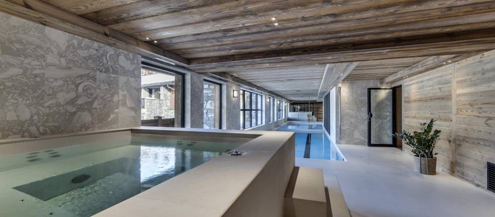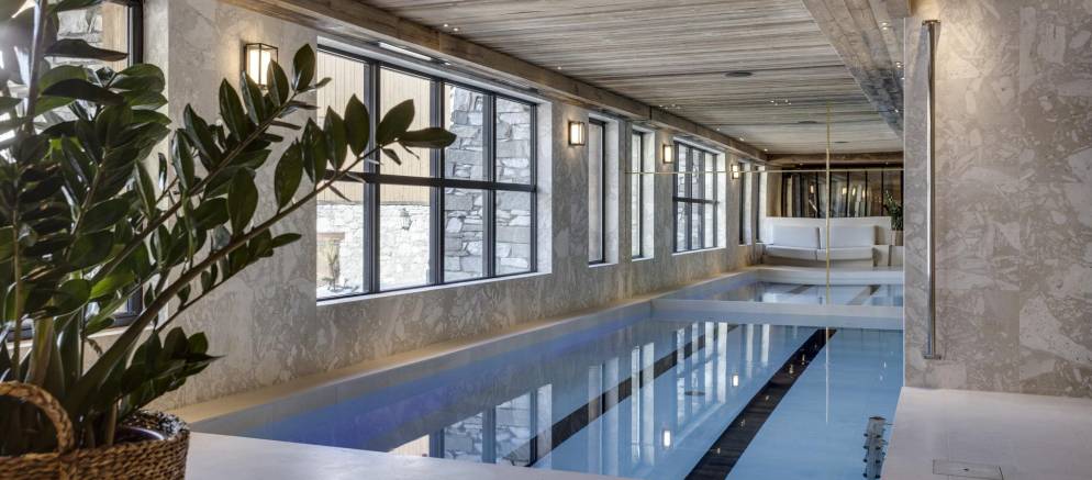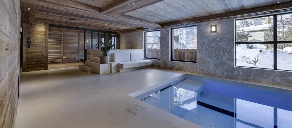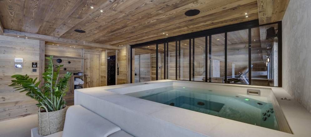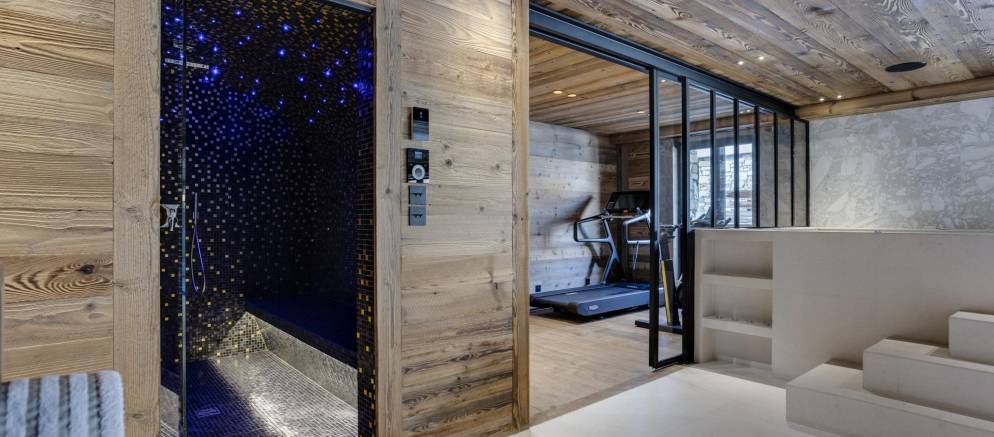The lowest two floors of the chalet are dedicated to your wellness and relaxation. The spa features an indoor swimming pool, indoor hot tub, and hammam, ensuring you are fully refreshed for each day’s skiing. There is also a fitness room if you feel the need for a further workout even when not sliding down the ski slopes.