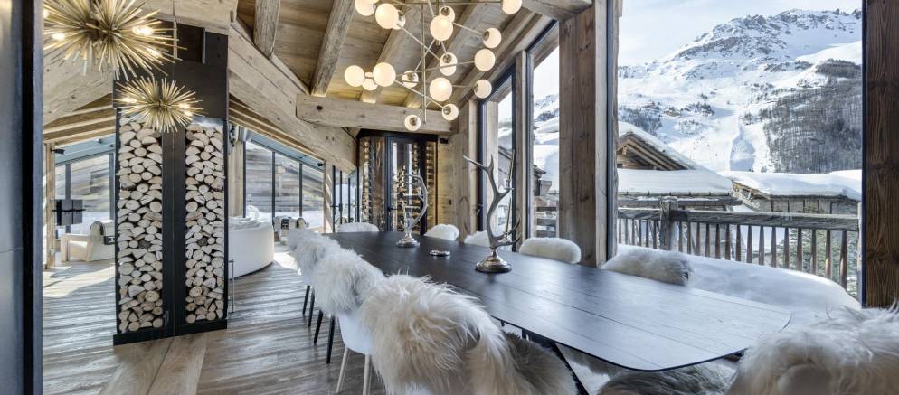 Chalet L’Ours Blanc is a stunning luxury ski chalet in Val d’Isere. Spread across four floors and a spacious 500m2 of floor area, the chalet can accommodate 12 guests in six en-suite bedrooms. The chalet perfectly blends traditional materials, contemporary furniture, designer lighting and extensive spa and entertainment facilities, for a truly memorable winter holiday.
