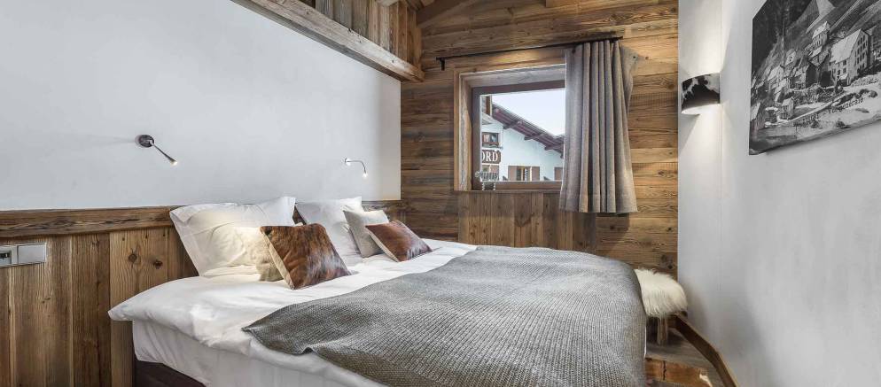 La Canadienne N°8 is a wonderful self-catered duplex apartment located on the third floor in the residential and quiet area of Petit Alaska in Val d’Isere. Only 500m from the snow front, the apartment offers an area of 125 m², beautiful spaces and 4 bedrooms to accommodate up to 6 adults and 4 children. The high-end decoration, with its contemporary style and traditional atmosphere, combines alpine materials such as fur, leather, metal, old wood and old stone.