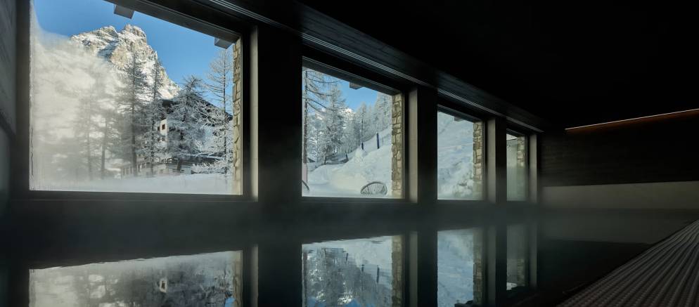 After returning directly to the chalet from the ski slopes, you will no doubt require some relaxation and pampering. If this is the case, then the lowest level of the chalet is where you need to head. Take a dip in the indoor 10m swimming pool with mountain backdrop, ease tied bodies in the warming hammam, or sink into the outdoor hot tub before sitting around the firepit and gazing out over the illuminated resort centre of Cervinia.