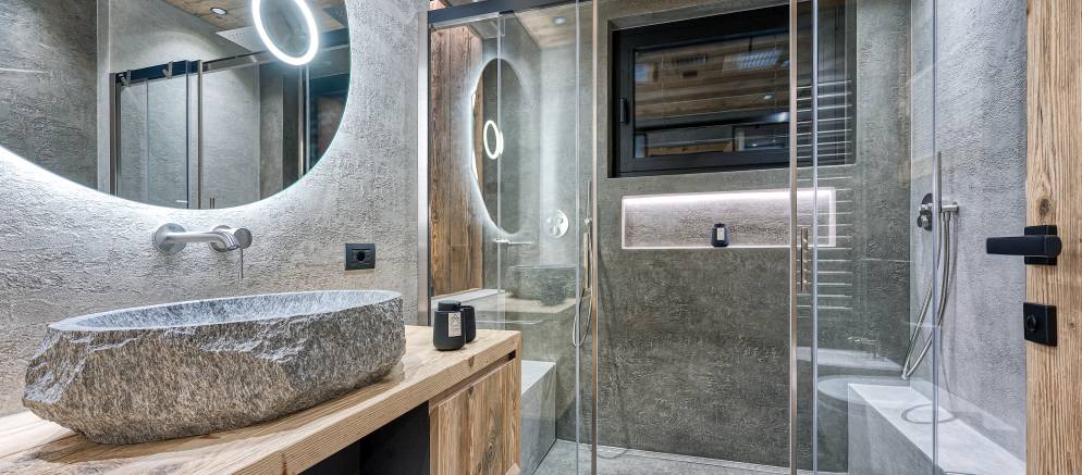 The chalet has five en-suite bedrooms that all offer a cocooning space for a peaceful night’s sleeps. On the ground floor there is one double bedroom that features its own private sauna as well as terrace access and an en-suite with a twin shower.
