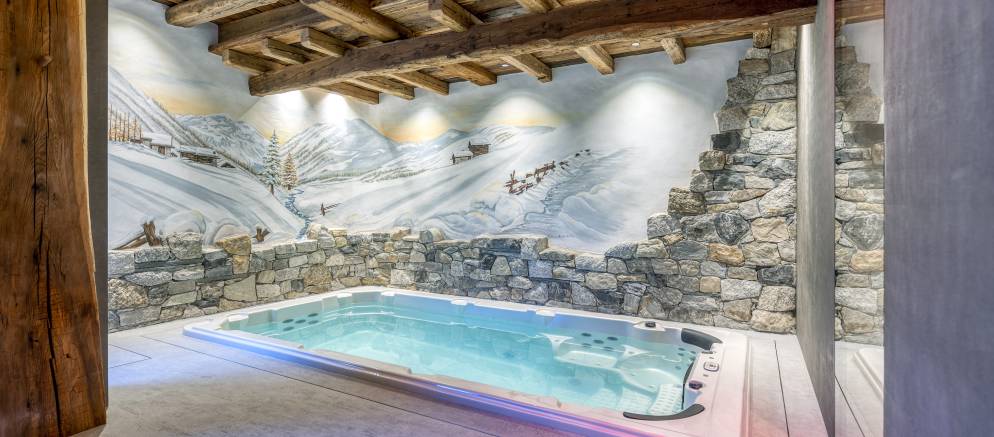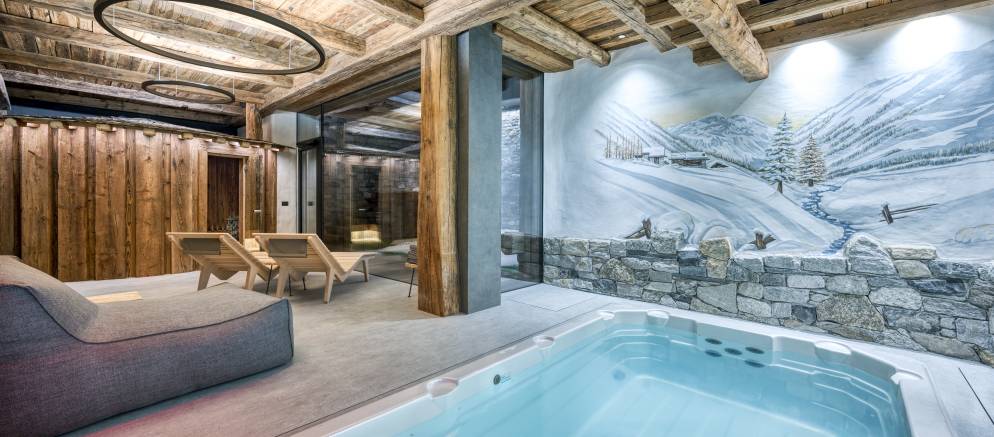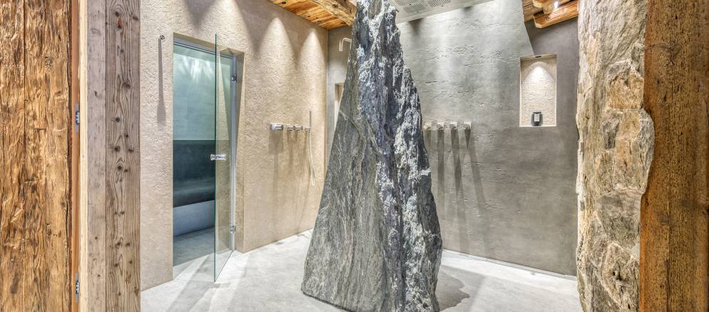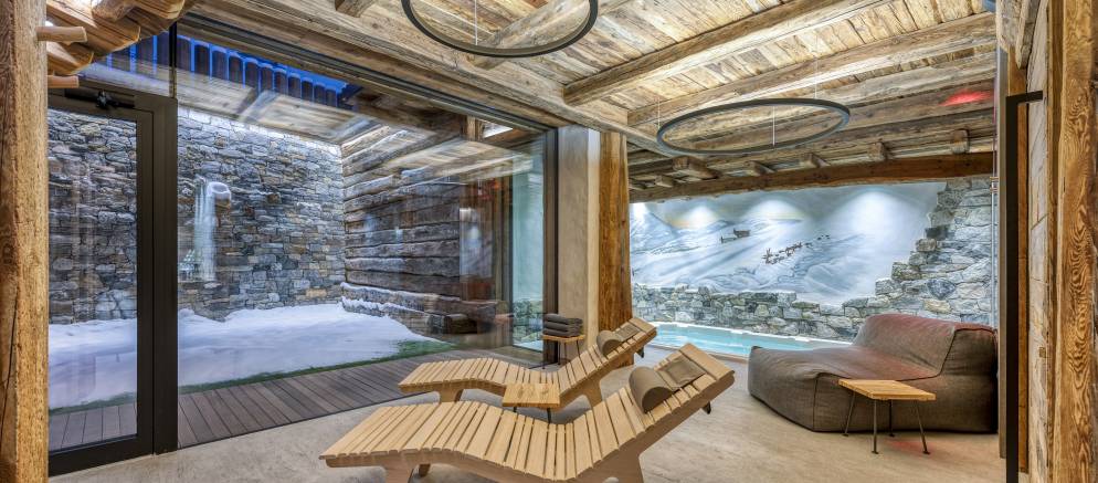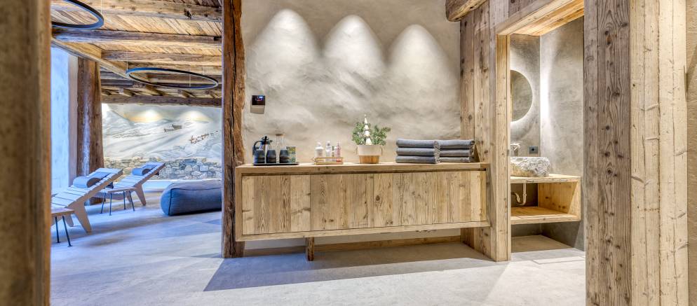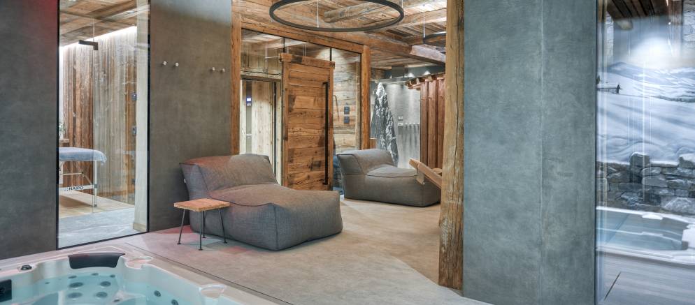 Taking the lift down to the basement level and your eyes will light up at the sight of your private spa and wellness area. Here you can unwind to your hearts content, whether back from the ski slopes, or just enjoying a lazy day in the chalet. The choice of facilities is extensive, with a counter-current swim spa, Finnish sauna, Turkish steam room, emotional showers, massage room and relaxation area inside, as well as an outdoor hot tub in the private garden.