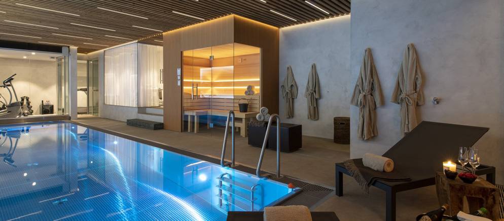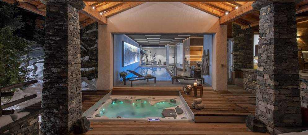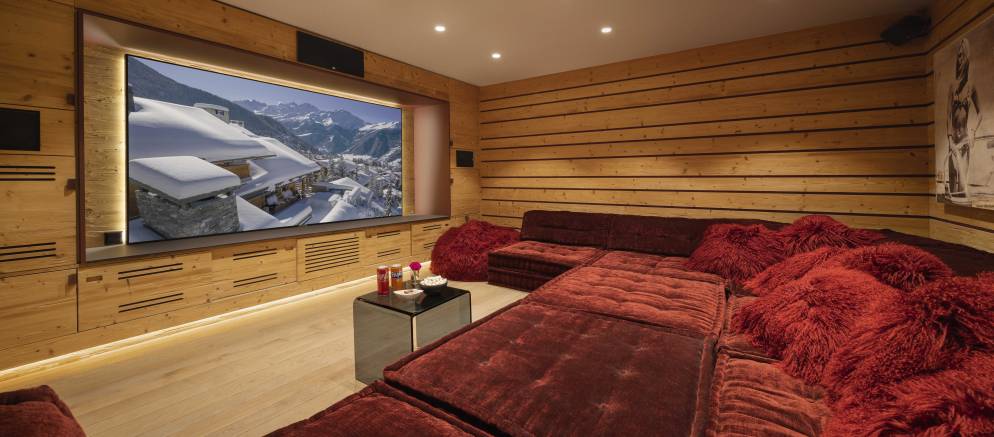 For those who enjoy relaxing, there is a feature swimming pool with a huge glass window and an uninterrupted view of the Alps. There are indoor and outdoor private fitness zones, indoor swimming pool, sauna, massage room, and outdoor Jacuzzi and Canadian cedarwood hot tubs. The chalet’s facilities include a glamorous private cinema, a games room and an enormous terrace with panoramic views.
