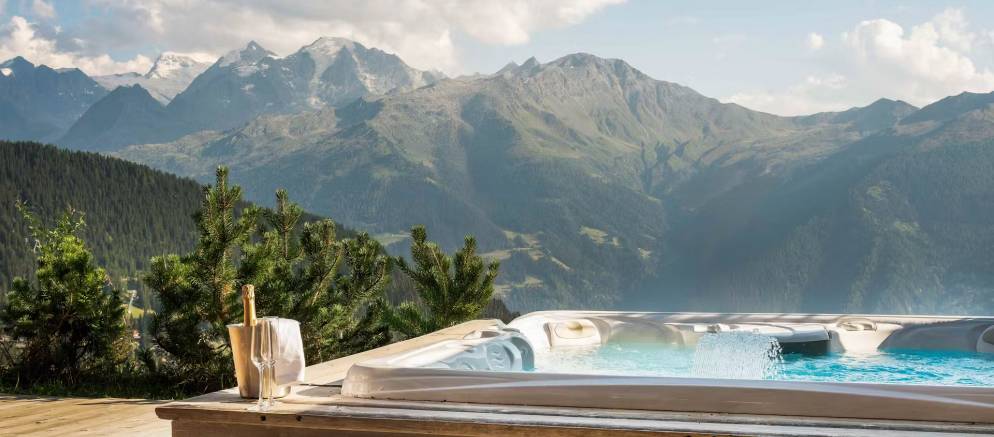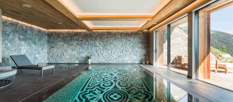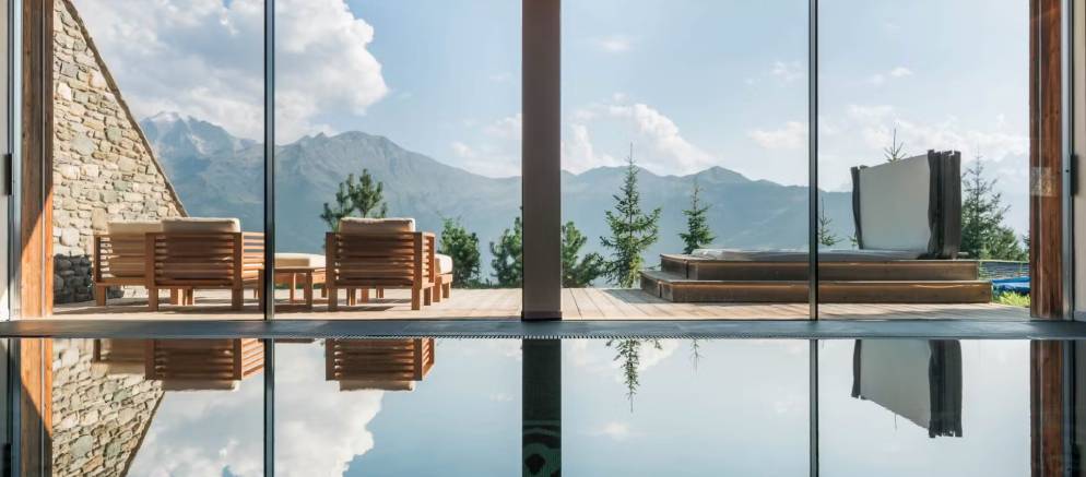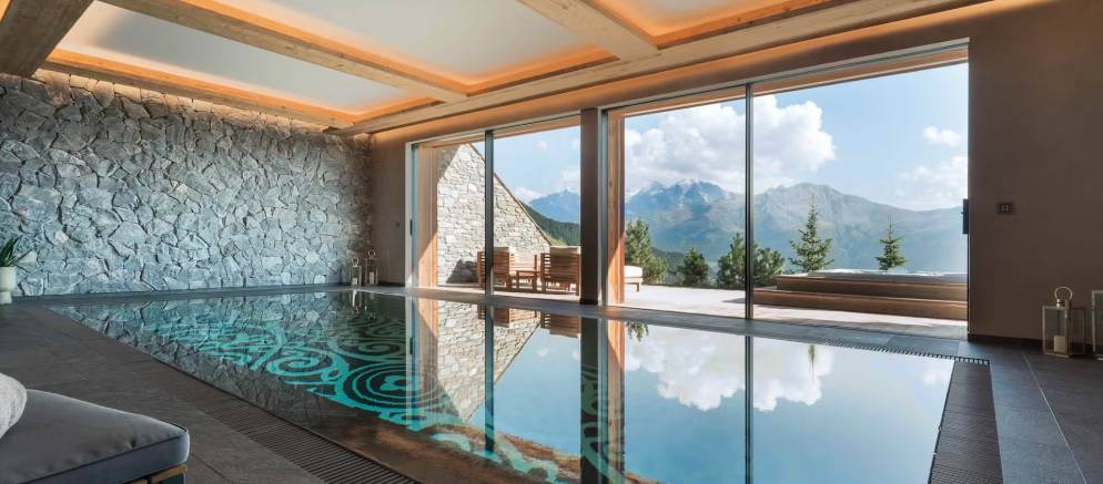 Chalet Calima is a luxury catered ski chalet in Verbier. The stunning view from the indoor swimming pool and spa area is the outstanding feature of this stylish chalet. Sleeping eight people in four en-suite bedrooms and with a sublime décor and incredible spa facilities, Calima is a world class ski chalet.