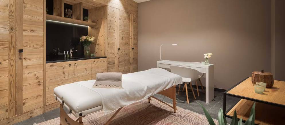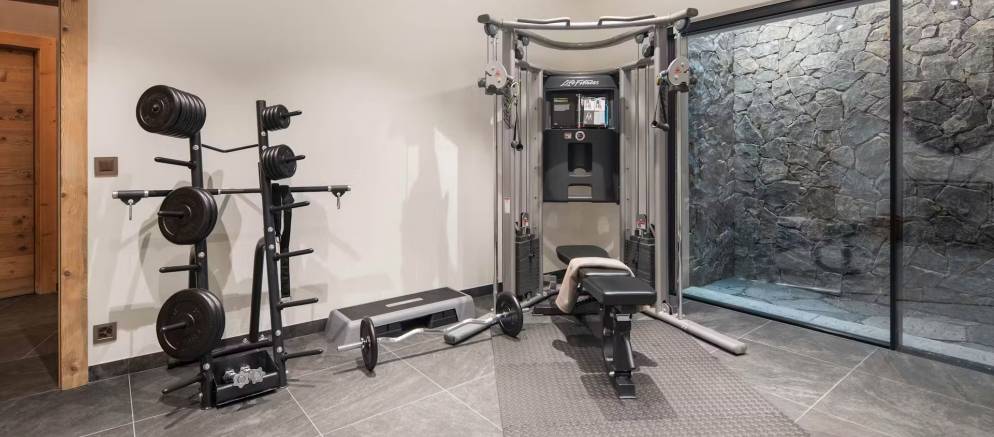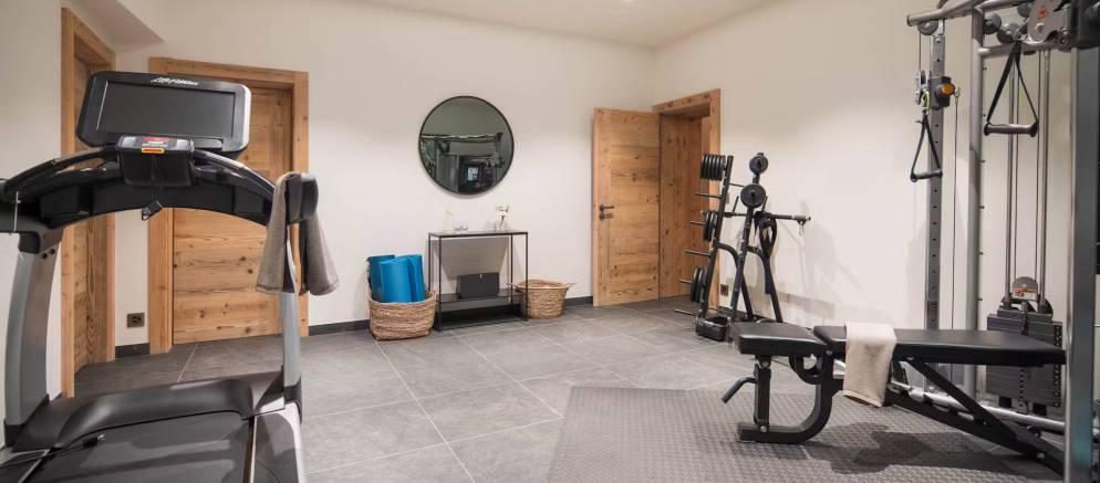 Stepping outside onto the large wooden deck, you will find an outdoor hot tub. As the sun drops down at the end of another glorious day in Verbier, there is no better place to be. Comfortable lounge chairs inside and out complete the picture of true relaxation. There is also a gym, massage room, and a shower room with toilet on this level too.