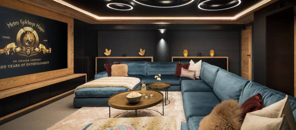The extensive garage occupies much of the floor above, with space for four vehicles. There is also a spacious cinema room on this floor and is perfect for relaxed and immersive movie nights in. The chalet is completed with a ski room with plenty of storage and boot warmers.