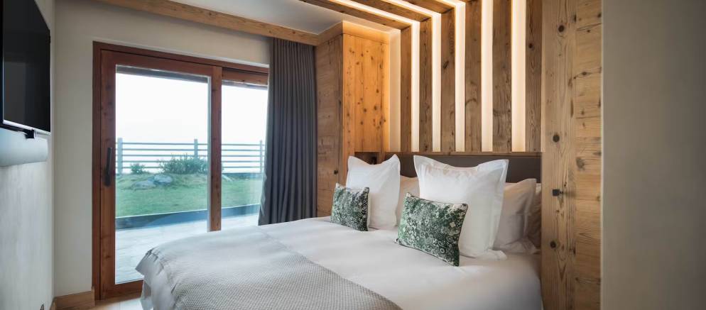 The chalet is arranged over four floors which are linked by both a staircase and elevator. The front door opens onto the first floor level and which is the dedicated sleeping floor. Here there are four contemporary double bedrooms, two of which can also be arranged with twin beds. All of the bedrooms feature en-suite shower rooms and the master suite has a bath too.
