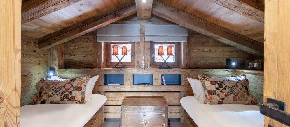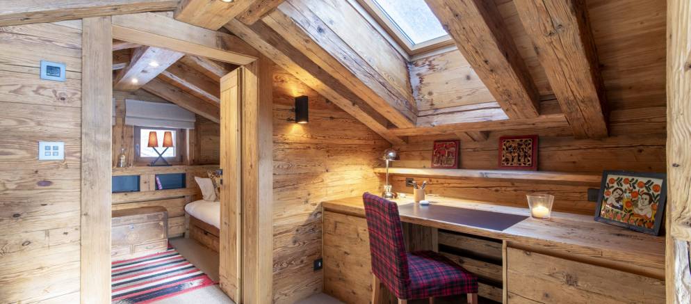 The final bedroom is tucked away up on the mezzanine floor and is a well-appointed children’s twin bedroom. The level also offers a cosy TV snug, and a small office.