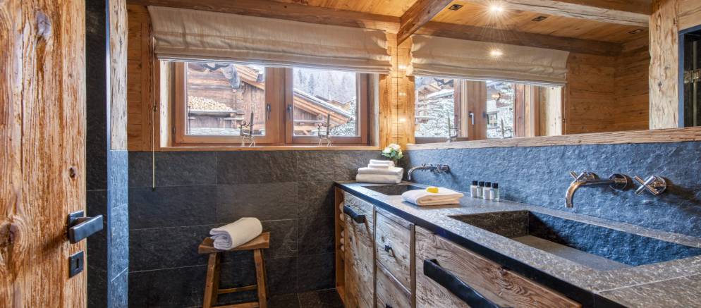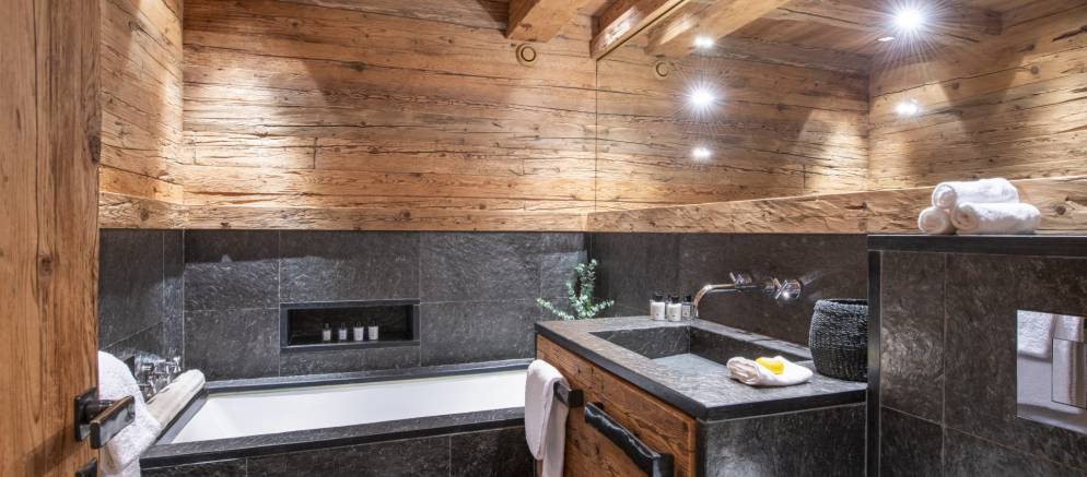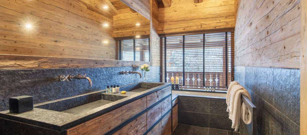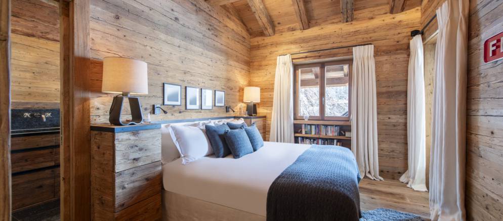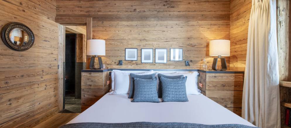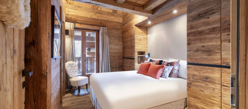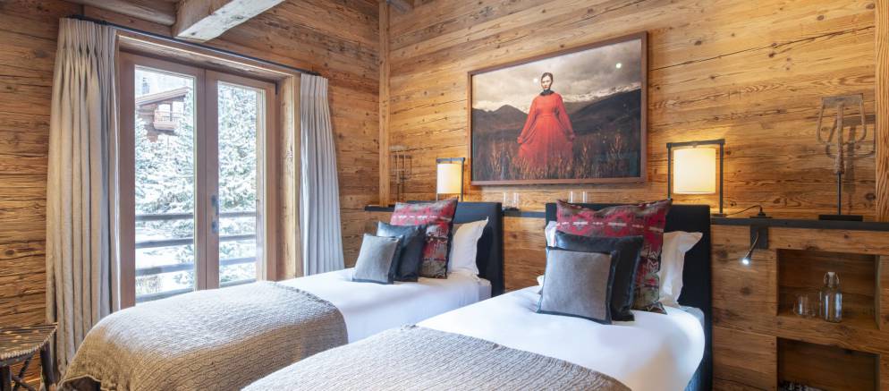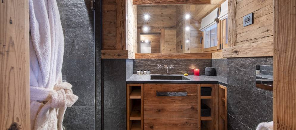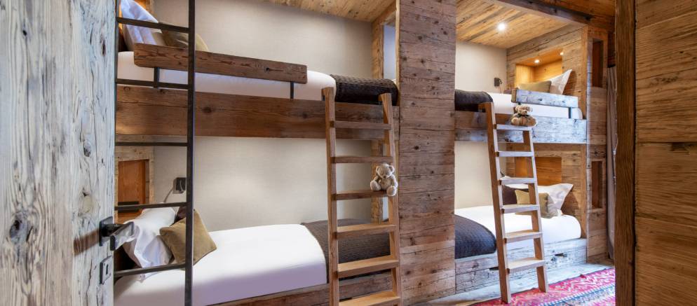 Sleeping 8-10 guests, there are five bedrooms spread across three floors. On the same level as the living spaces is the master double bedroom, with a luxurious en-suite bath and shower, and his and hers sinks. Access to a shared balcony delivers breathtaking mountain views from sunrise to sunset.
