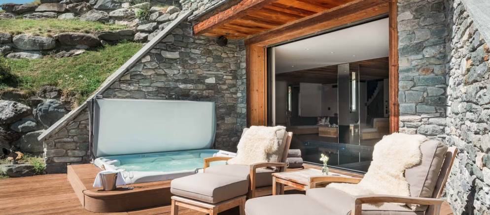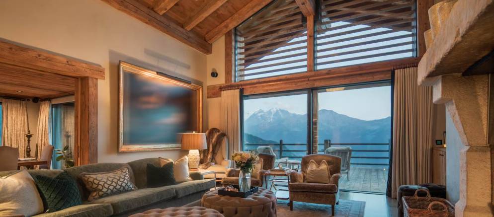Whether gathered beside the fireplace with vintage wine in hand, or basking on the south-facing terraces wrapped in fur throws, guests are immersed in the elegance of mountain luxury.