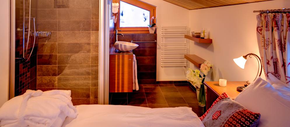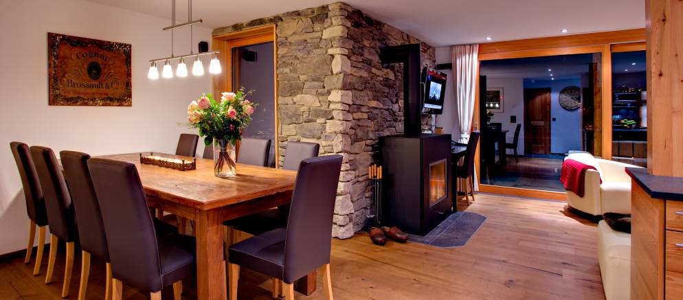 At street level there is a tunnel which leads you to a lift built inside the mountain, from the top of which there is a gentle 2 minute walk to the property. The chalet comes with an electro transporter, which the staff will use to move your luggage and shopping as required. Skis and boots can be left in the tunnel’s ski-room. Although it does not have a Matterhorn view, the chalet is bathed in sun as soon as it emerges. The chalet is a mirror image of Chalet Castor.