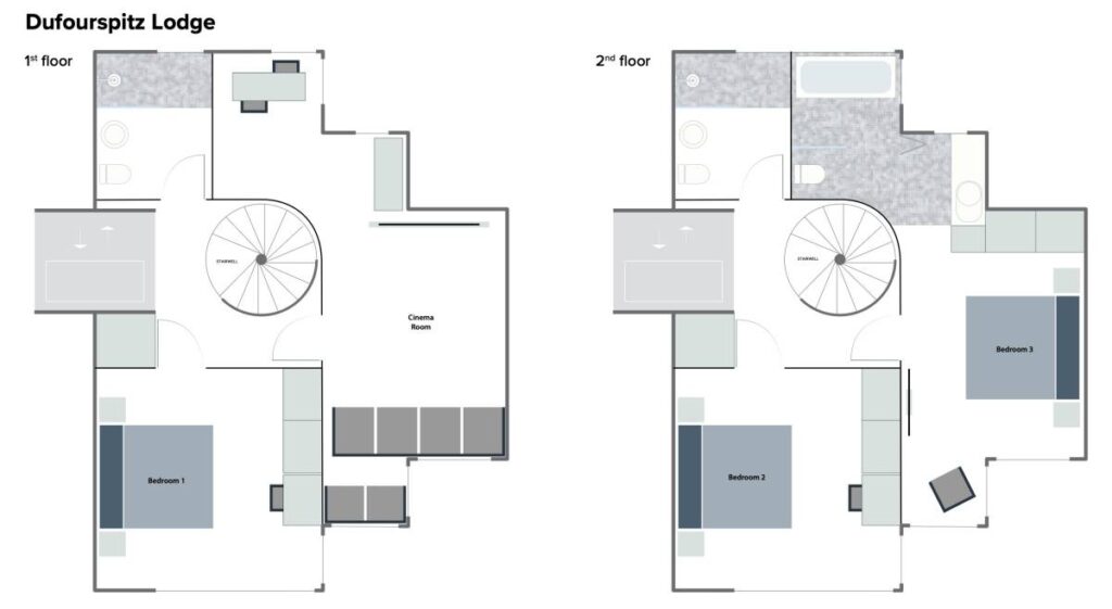 Dufourspitz Lodge is available to rent on a self-catered basis and includes concierge services, along with pre-arrival fridge fills and a daily bread and pastry delivery service (shopping costs additional).