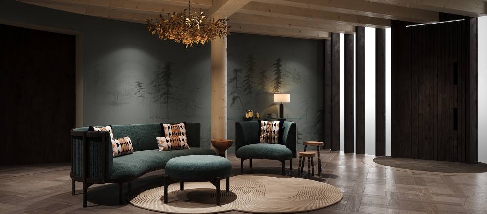 The residence also features a reception area, a workspace that can be booked for private use, along with a cosy lobby with fire feature and relaxation area. For your mountain equipment there is access to a ski room with ski lockers and boot warmers.