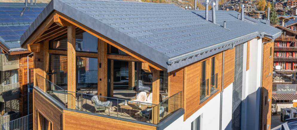 Penthouse Weissmatten in Zermatt is a stunning penthouse newly built for the 2025-6 season. Located in House Alpa, and with elevator access, this spacious apartment accommodates up to 6 guests. It is very centrally located and within easy walking distance of all the resort amenities, including the nearest shops and restaurants which are just 1-minute away.