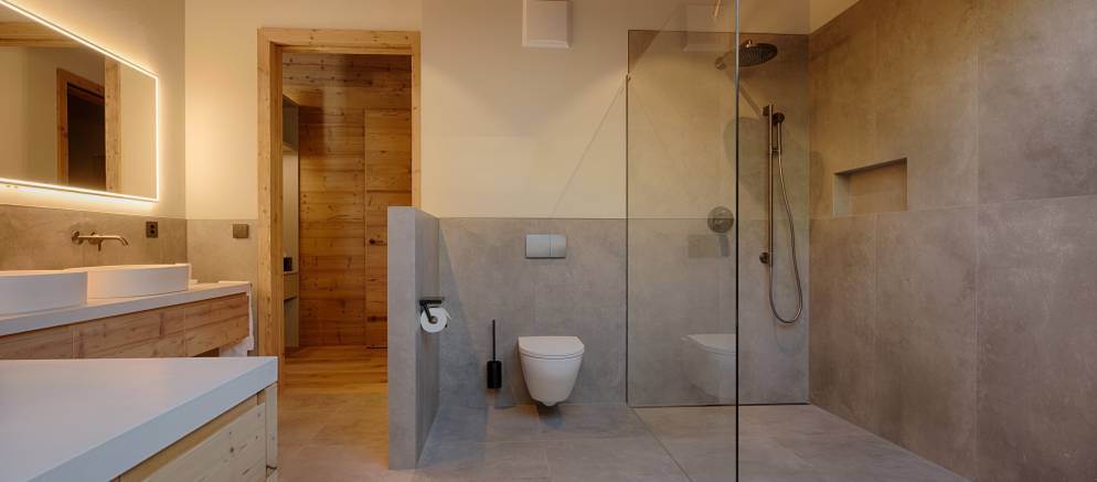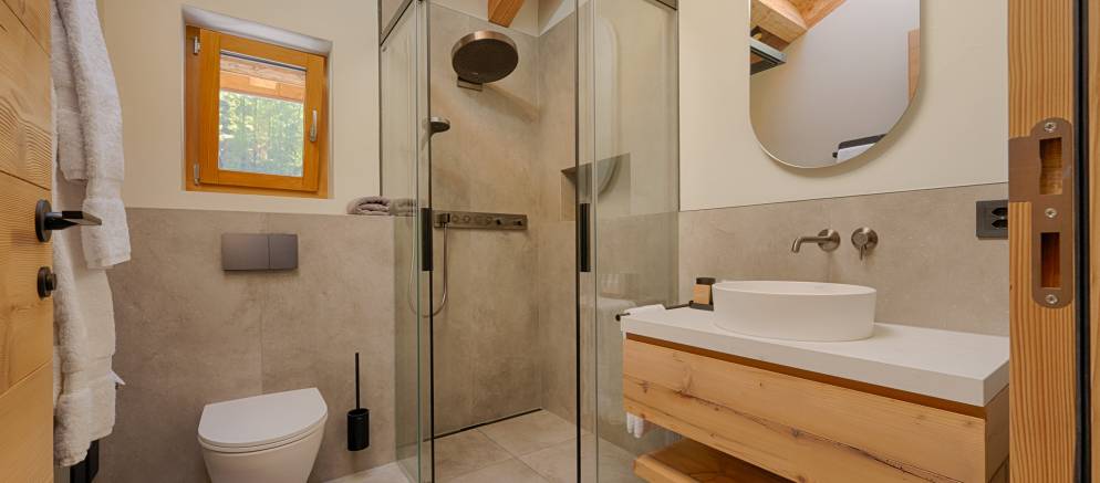 All three bedrooms have en-suite bathrooms, the master bathroom has both a bathtub and a shower, the other two bathrooms have showers. The master bedroom has a double bed, whilst the other two rooms can be arranged with either a double or Austrian twins.