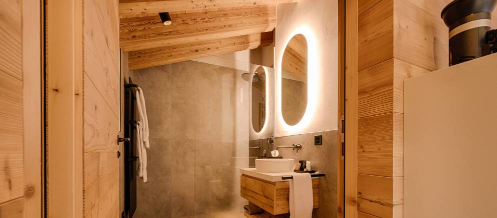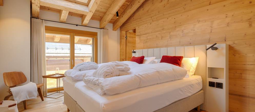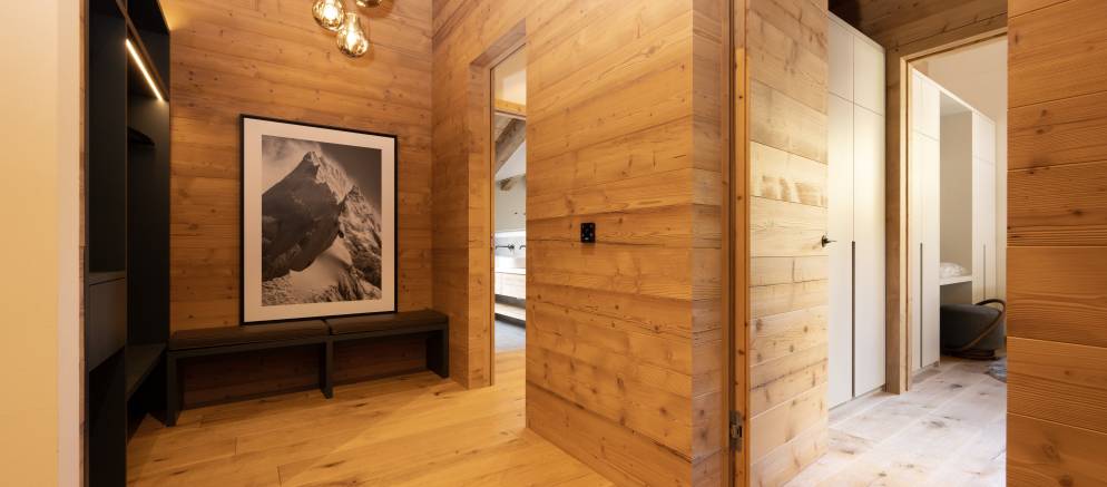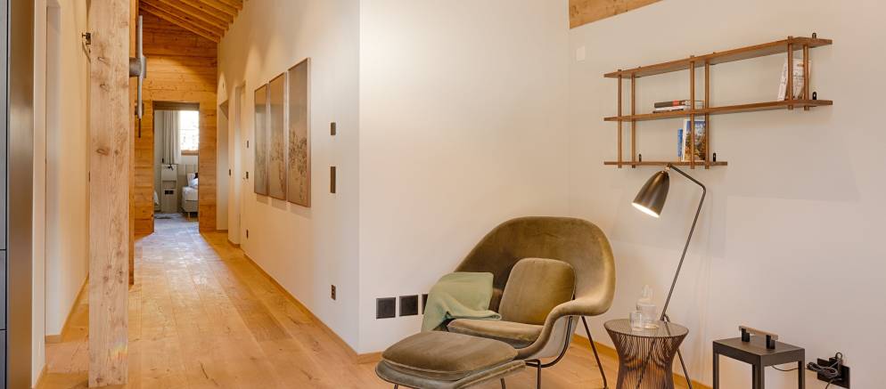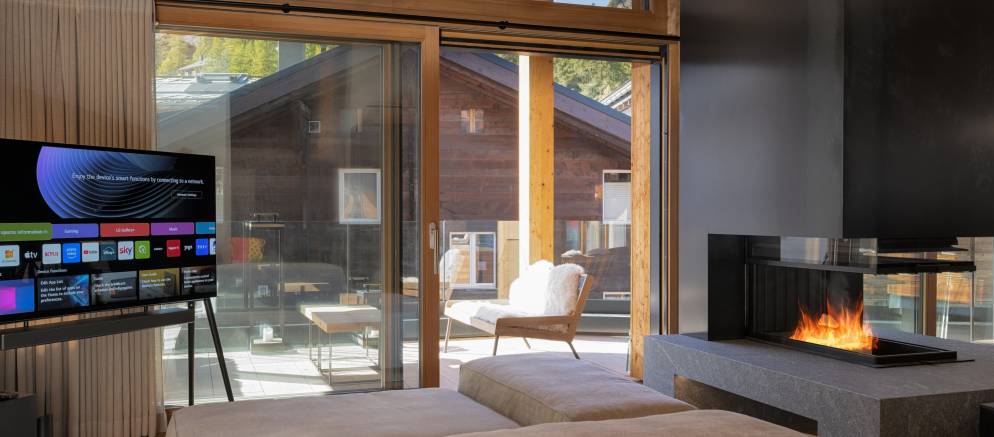 Spread across one level and 190m2 of floor area, Weissmatten’s interior is enhanced by an exceptionally high ceiling and wide hallway. The Penthouse is finished to the highest specification with top of the range equipment and design furnishings throughout. Mountain larch tree wood and a wood burning feature fireplace all add to the cosy alpine ambiance.